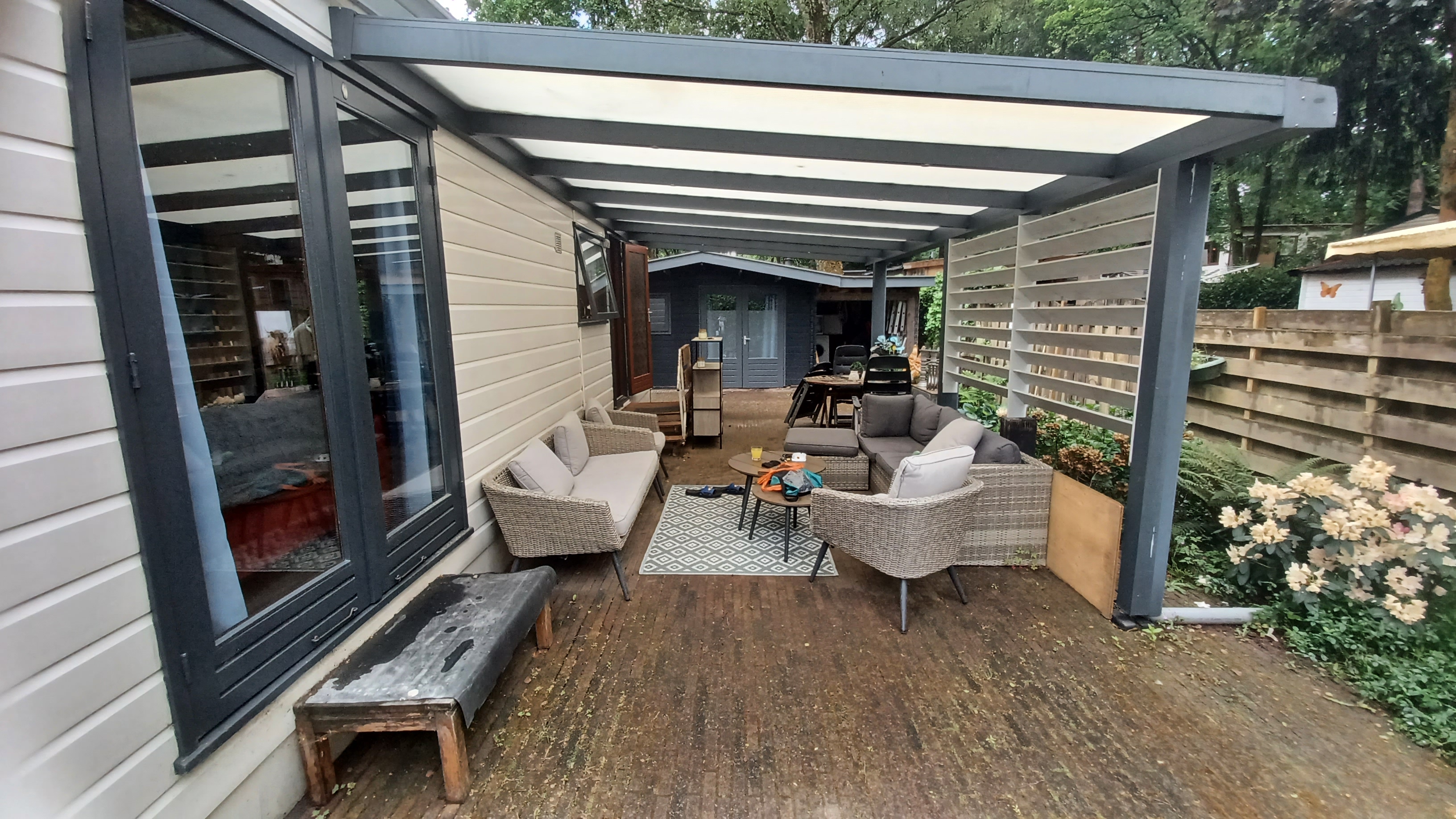 Op recreatiepark ’t Veluws Hof staat deze luxe chalet