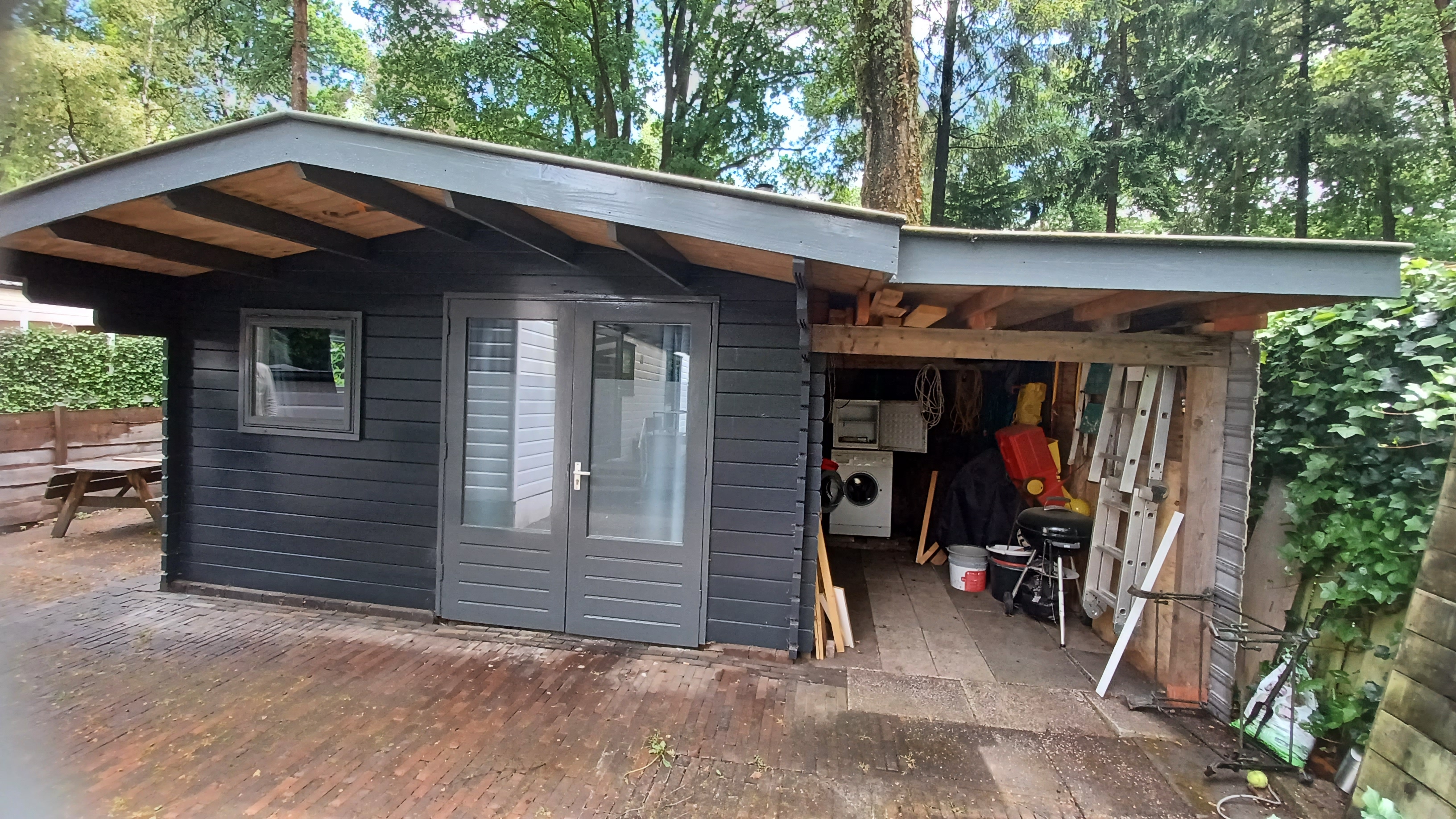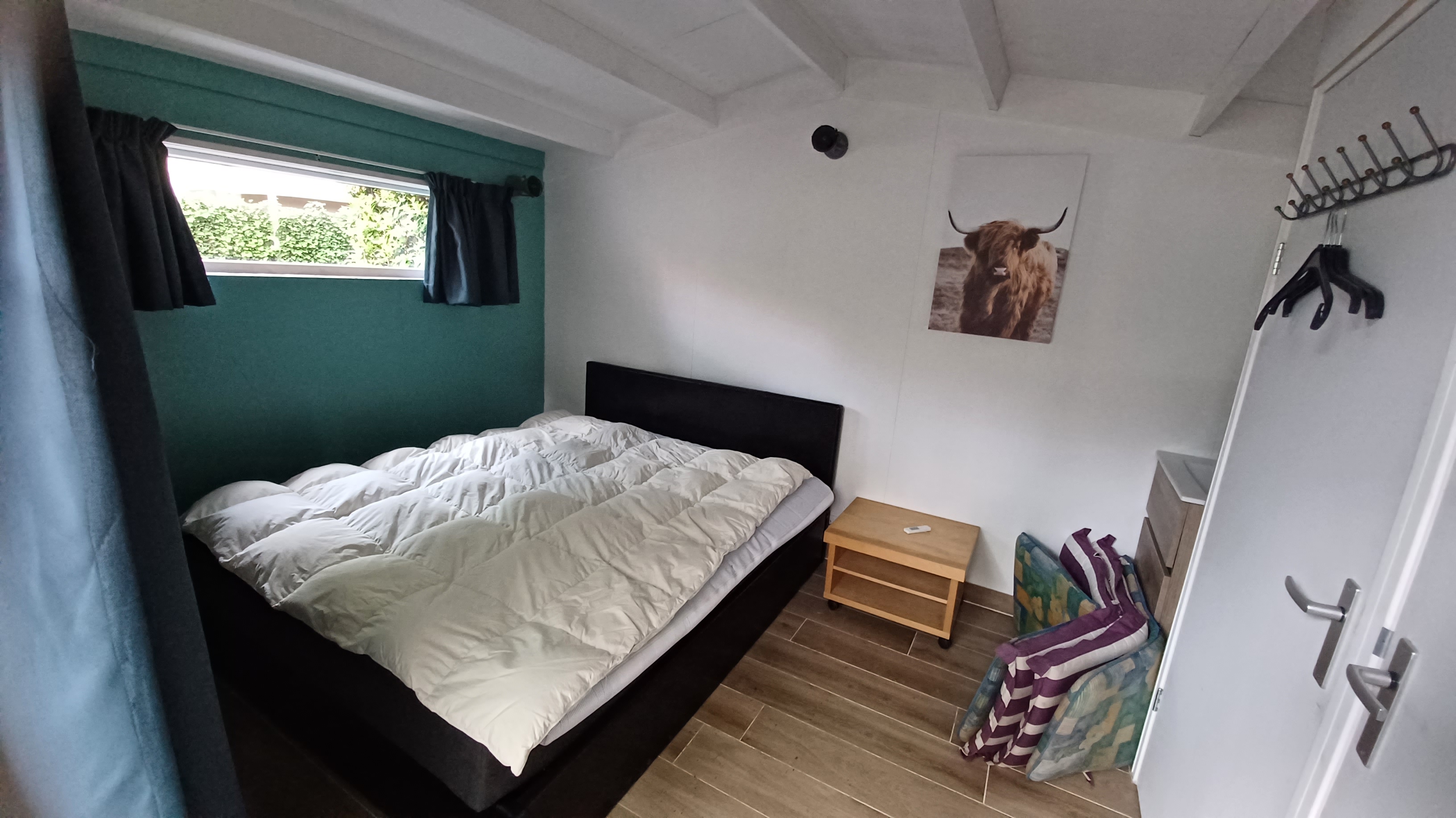 Naast het chalet staat een groot blokhut die volledige geïsoleerd is. Daarin bevindt zich de 3de slaapkamer met een 2 persoons boxspring en een 2 persoonsdekbed ook is er een wastafel aanwezig en heeft het vloerverwarming.